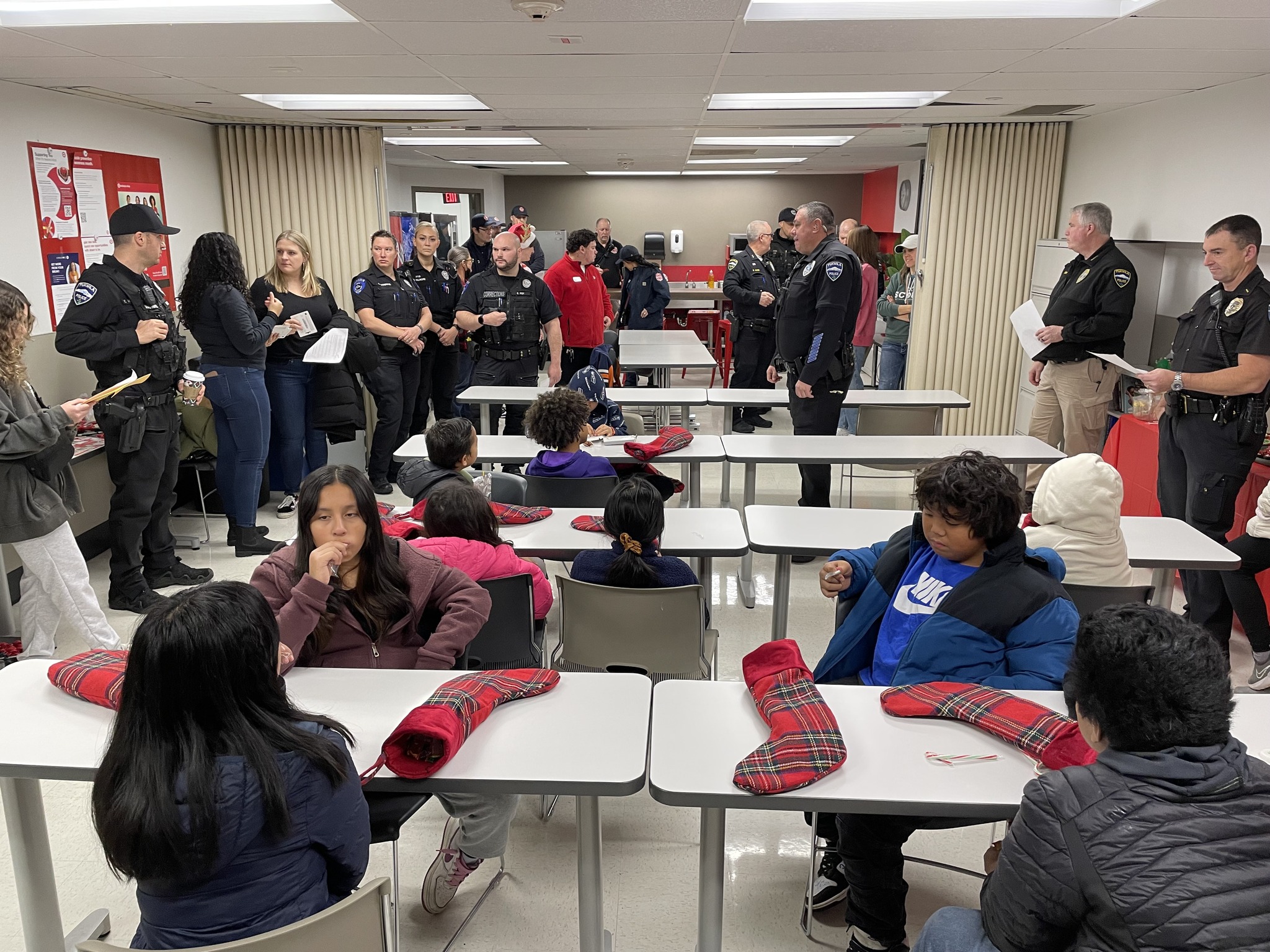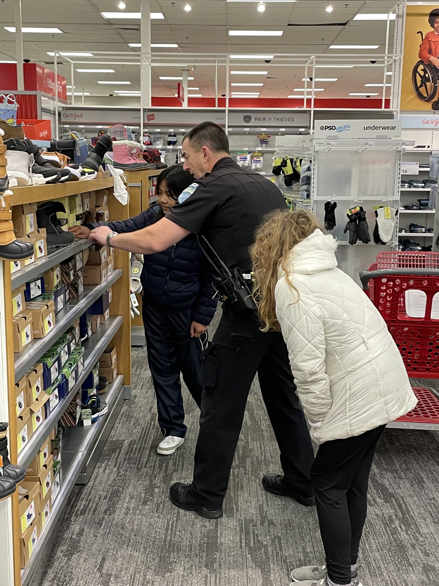 “After shopping, we gift wrap and have lunch, and then the student is dropped off at home by an officer who helps to bring the wrapped gifts inside. Every student had about $850 each to shop for their family at Target and JCPenney this year.
