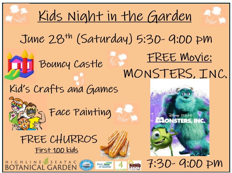 REMINDER: Families are invited to enjoy a summer evening of free fun and entertainment at the Highline SeaTac Botanical Garden’s “Kid’s Night in the Garden” this Saturday, June 28, 2025.