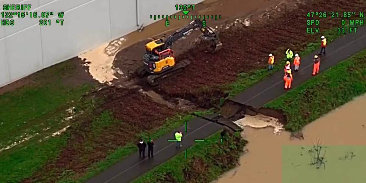 King County emergency officials ordered residents and businesses east of the Green River in parts of Tukwila, Renton and Kent to evacuate immediately on Monday afternoon, Dec. 15, 2025 after a breach in the Desimone Levee created dangerous flooding conditions.
