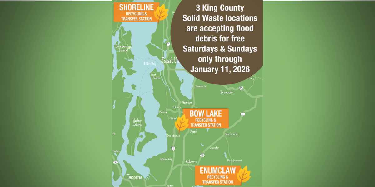 Beginning this Saturday, Dec. 20, three King County transfer stations will accept flood debris for free on weekends only through Jan. 11, 2026, according to the King County Solid Waste Division.